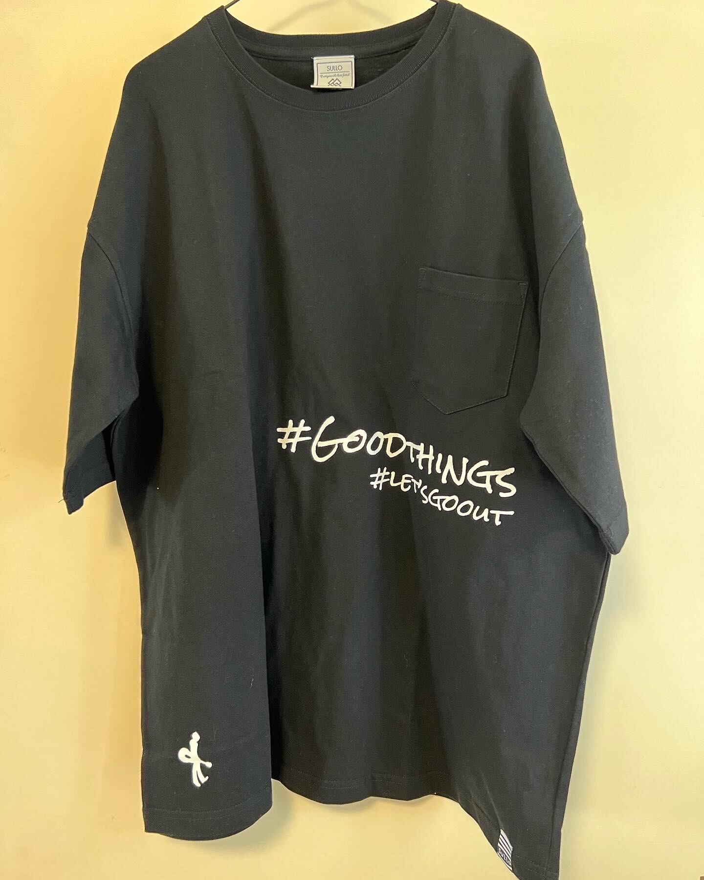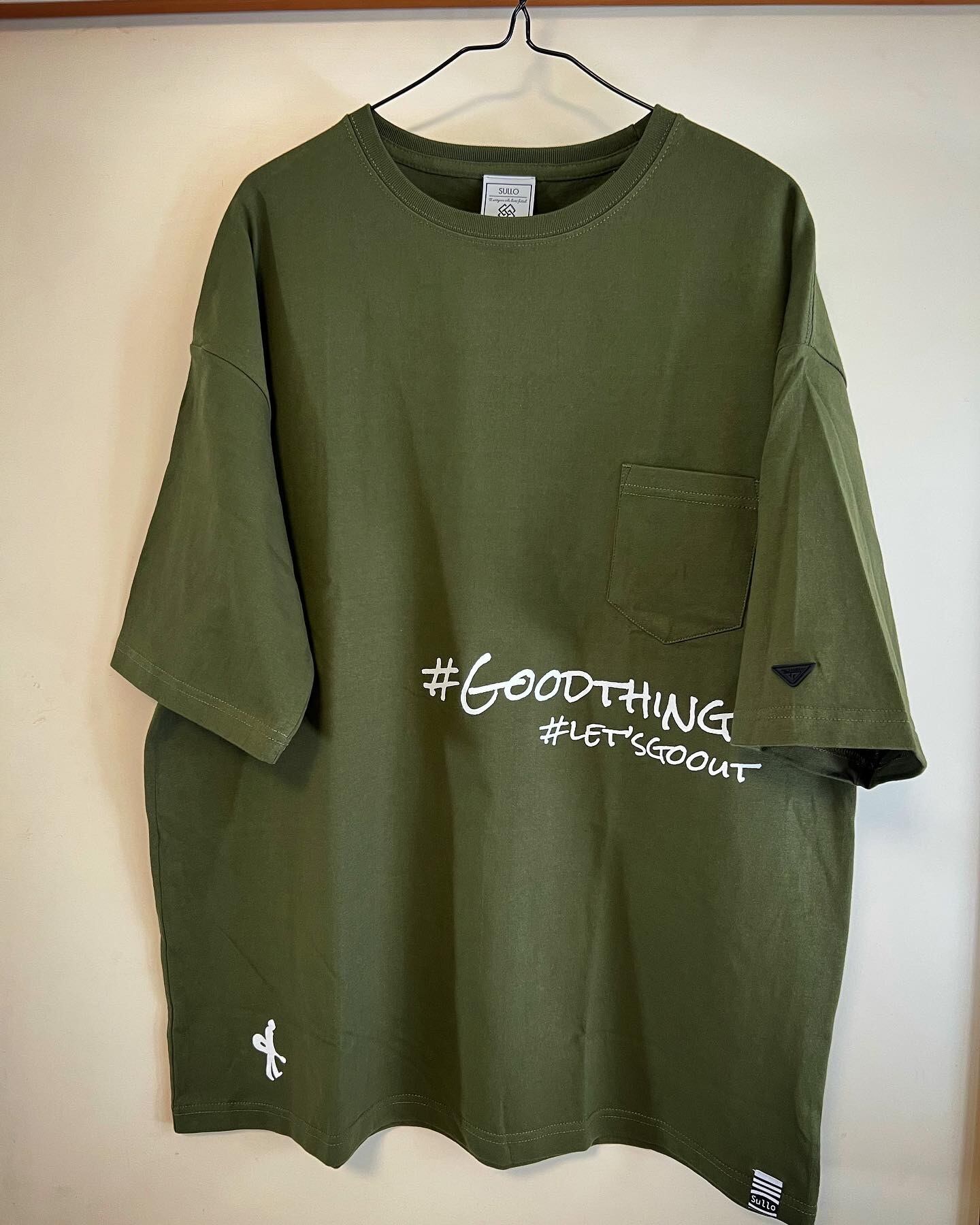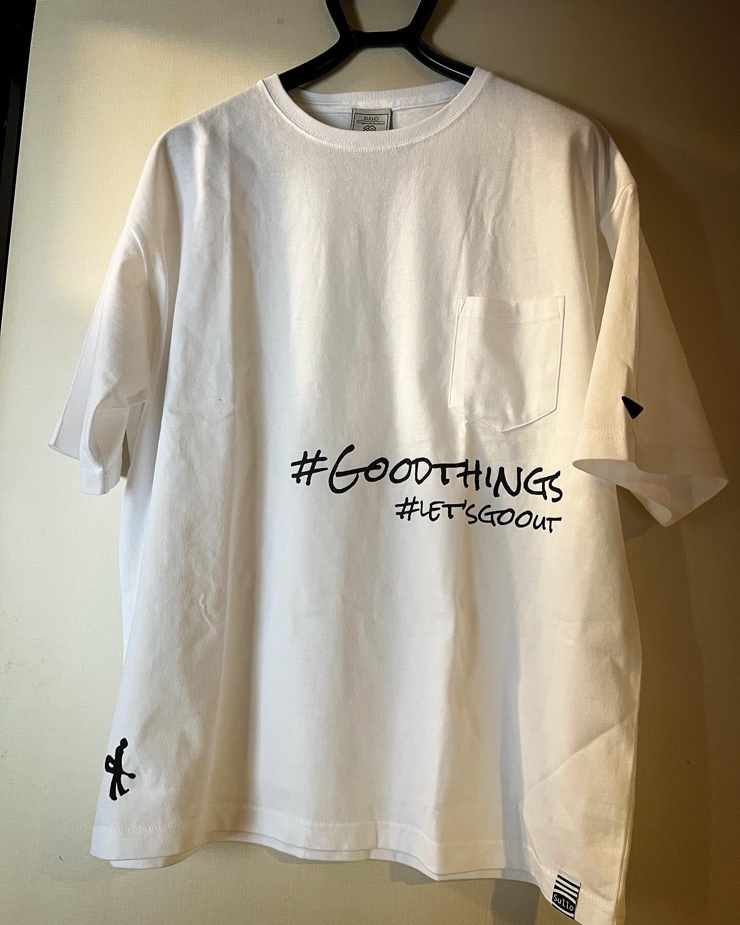 ALIVE Tee同様のワイドボディポケットTシャツをベースにgood thingsのロゴとsouichiシルエットマークが右裾に